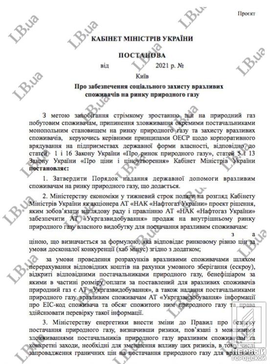 Изданию LB.ua из личных источников удалось получить документ, похожий на постановление Кабмина. Согласно ему, правительство планирует установить с 1 февраля сроком на один год цену по формуле – цена газа на немецком хабе NCG минус стоимость его транспортировки до западной границы Украины. В итоге цена газа, как сообщил и. о. министра Юрий Витренко, может снизиться на 44% от средневзвешенной на рынке – до 5 356 гривен за тысячу кубометров. Для поставщиков предлагается установить предельную наценку в 10%. Продавать голубое топливо поставщикам для конечных потребителей Кабмин предлагает обязать компанию «Укргазвидобування».