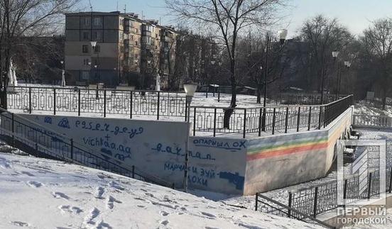 15 января неизвестные разрисовали смотровую площадку возле ЦДЮТ «Мрія». На хулиганов пожаловался исполком Ингулецкого районного совета.