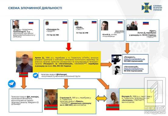Оперативники СБУ выяснили, противоправные действия осуществлял Главный центр специальной службы Генерального штаба Вооруженных Сил РФ. Находится спецслужба РФ на территории подконтрольной России «ПМР» – Приднестровской Молдавской Республики в Тирасполе. В число правонарушителей входили и украинцы – жители Харькова и Одессы, которые являются активистами так называемой «русской весны». Они создавали и размещали провокационную информацию в политических всеукраинских и региональных Telegram-каналах: «Легитимный», «Резидент», «Картель», «Сплетница», «Черный квартал», «Политический расклад», «Нетипичное Запорожье», «Тремпель Харьков», «Одесский фраер», «Днепр live», «Николаев live», «Херсон live». Главной задачей размещенных материалов была дискредитация органов государственной власти, влияние на госполитику, искусственное создание социальной напряженности и протестных настроений среди граждан Украины.