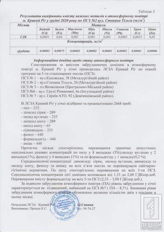 В воздухе на территории Кривого Рога обнаружили превышение допустимых концентраций некоторых загрязняющих веществ, в частности пыли, фенола, оксида углерода и формальдегида. Отчёт по анализу загрязнений воздуха предоставили за январь 2021 года. Ежемесячный бюллетень обнародовала Лаборатория наблюдений за загрязнением атмосферного воздуха Кривого Рога на сайте Криворожского горисполкома.