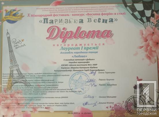 Танцоры из музыкальной школы Кривого Рога отличились на международном конкурсе искусств