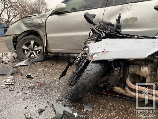 В Кривом Роге мотоцикл врезался в легковушку, пострадал водитель