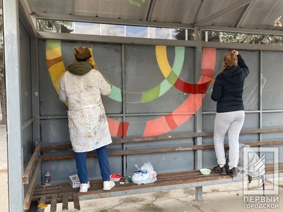Яркие краски: одну из остановок Кривого Рога восстанавливают после порчи вандалами