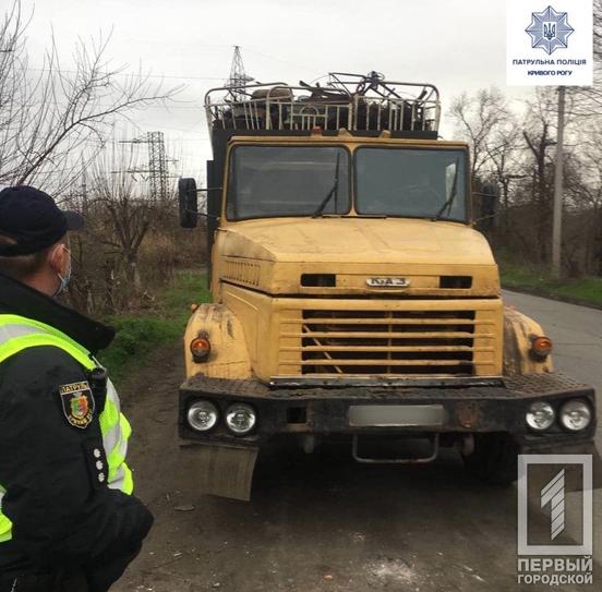 Патрульные остановили водителя «КрАЗа», который вёз металлолом. Во время проверки разрешительных документов на перевозку выяснилось, что в товарно-транспортной накладной указана информация, которая не соответствует действительности, а именно значилось другое место погрузки. На место вызвали следственно-оперативную группу Криворожского районного управления полиции №7.