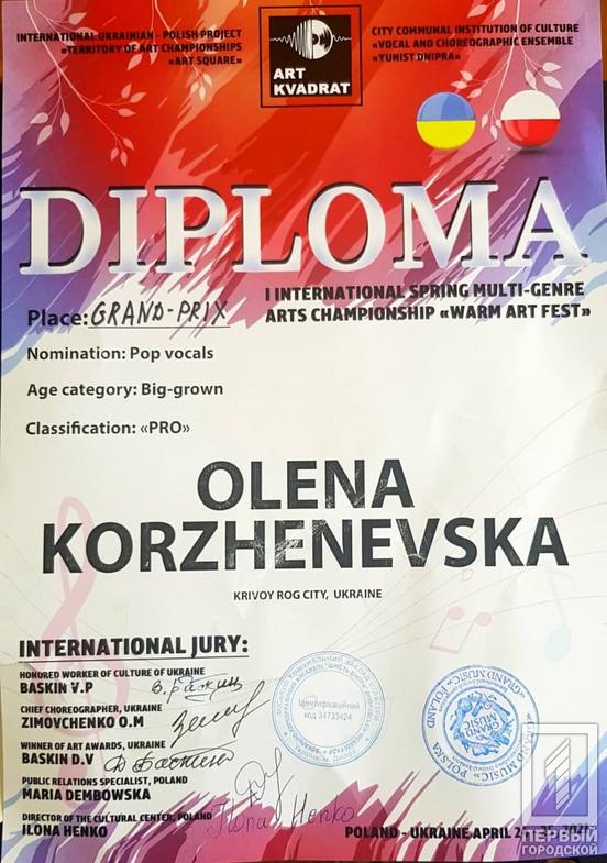 Вокалистка из Кривого Рога победила на международном чемпионате искусств