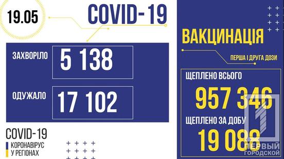 По состоянию на 8:00 19 мая в Украине зарегистрировали 2 165 233 случая заражения коронавирусом, 48 696 человек умерли, 1 899 446 выздоровели. За минувшие сутки COVID-19 обнаружили у 5 138 человек, в том числе 260 детей и 187 медиков, 227 пациентов скончались, 17 102 вылечились.