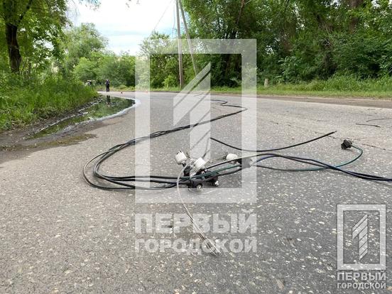 В Кривом Роге легковушка снесла электроопору, движение по одному из съездов клеверной развязки на Днепршоссе парализовано