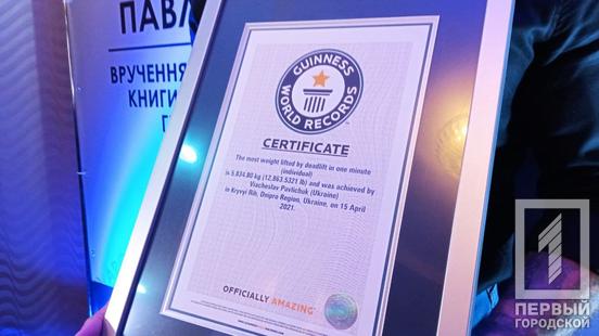 У Кривому Розі пауерліфтеру В’ячеславу Павлічуку вручили диплом Книги Гіннеса за встановлений світовий рекорд