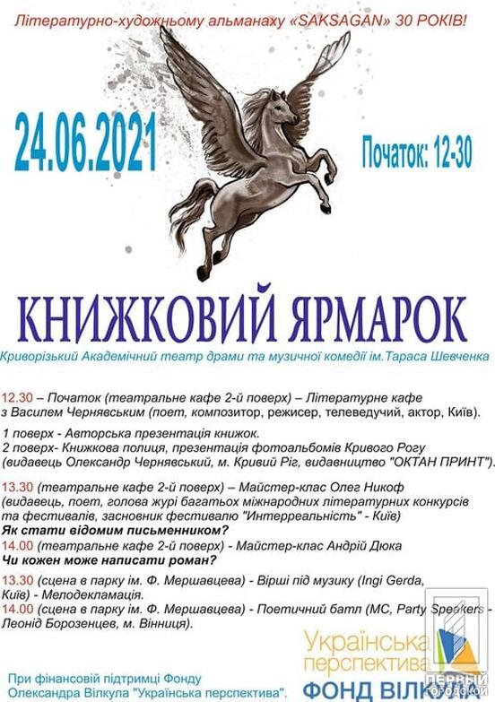 Святкування відбуватимуться протягом усього дня. Перша частина урочистостей пройде у Криворізькому Академічному театрі ім. Т. Г. Шевченка. Програма свята включатиме «театральне кафе» з поетом, композитором, режисером, телеведучим та актором – Василем Чернявским. У фойє театру буде виставка художників. На першому поверсі авторська презентація книг. На другому поверсі театру – книжкова полиця, презентація фотоальбомів Кривого Рогу. Відбудеться й майстер-клас «Як стати відомим письменником?» із поетом, головою журі багатьох міжнародних літературних конкурсів і фестивалів, засновником фестивалю «Інтереальність» - Олегом Никоф. Та майстер-клас із Андрієм Дюкою «Чи кожен може написати роман?».