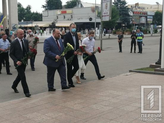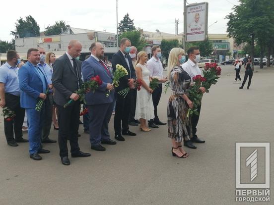 Об 11:00 біля пам’ятника Тарасові Григоровичу розпочали покладення квітів на честь 25-ї річниці ухвалення Конституції України. Серед присутніх були мер Костянтин Павлов, заступник міського голови Костянтин Бєліков, голова Довгинцівської райради Ігор Ратінов, членкиня міськвиконкому Ольга Бабенко та інші чиновники. Мер Костянтин Павлов взяв слово та поздоровив усіх мешканців міста з прийдешнім Днем Конституції України.