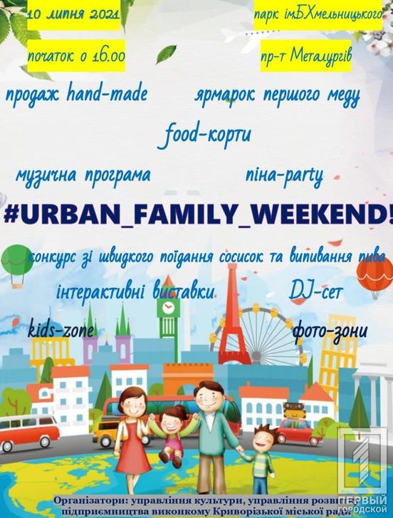 10 липня о 16:00 розпочнеться міське свято #urban_family_weekend в парку імені Богдана Хмельницького, що у Металургійному районі. Криворіжців чекатимуть розважальні та ігрові програми, майстер-класи, книжкові інсталяції, фотозони, інтерактивні виставки. Окрім того, на відкритій сцені буде цікава музична програма, а потім DJ-cет та пінна вечірка.