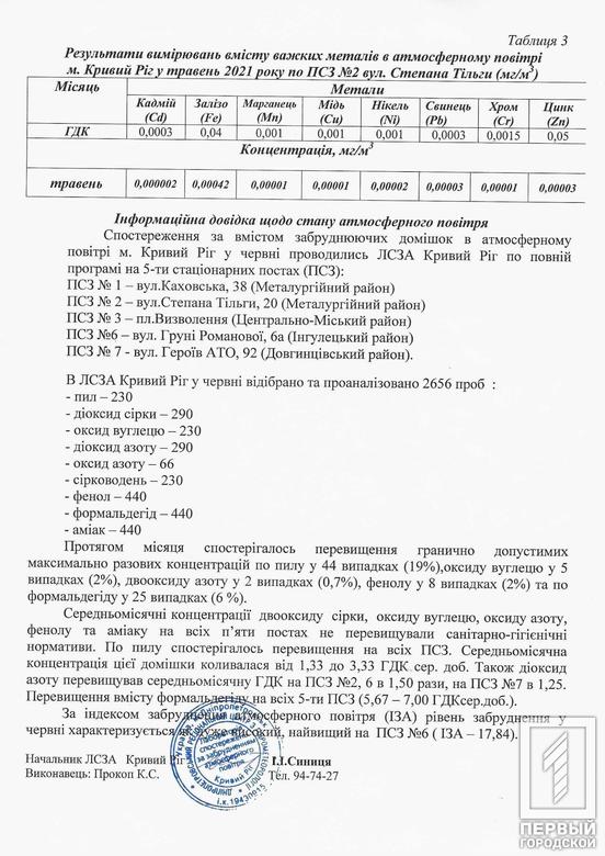 Спеціалісти криворізької «Лабораторії спостереження за забрудненням атмосферного повітря» у червні відібрали та проаналізували 2656 проб з п’яти стаціонарних постів у Центрально-Міському, Металургійному, Інгулецькому та Довгинцівському районах міста.