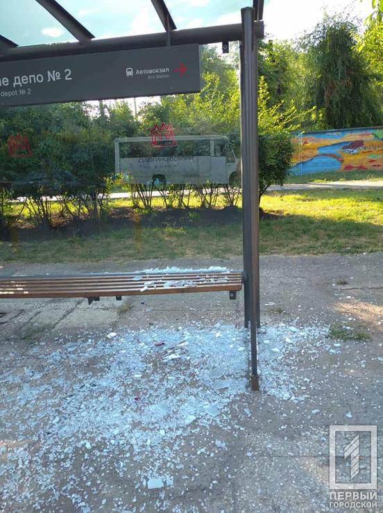 Розтрощили скло: у Кривому Розі вандали пошкодили нову зупинку громадського транспорту