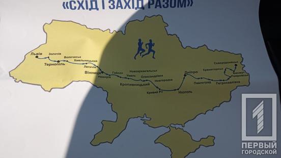 Учасники пробігу – троє чоловіків: Костянтин Билин з Краматорська та львів’яни Ярослав Козак і Андрій Левик. Вони взяли у свою «мандрівку» державний прапор, на якому розписуються українці з кожного відвіданого ними населеного пункту. Маршрут бігунів, який почався у Львові, проходить через 21 місто, серед яких Тернопіль, Вінниця, Умань, Нікополь та Петропавлівка. Після Кривого Рогу наступною точкою стане Нікополь.