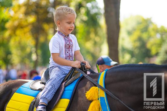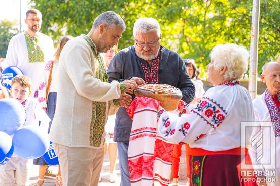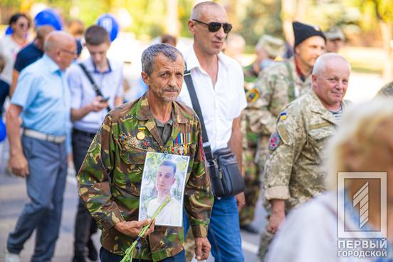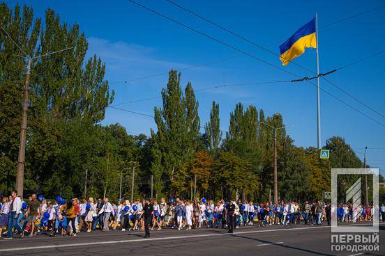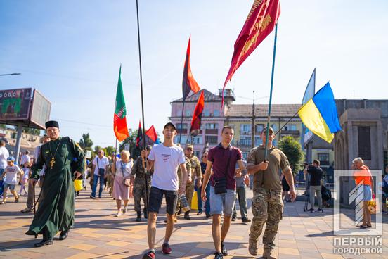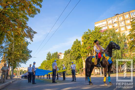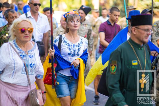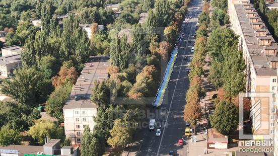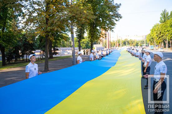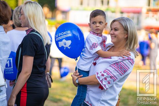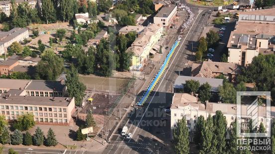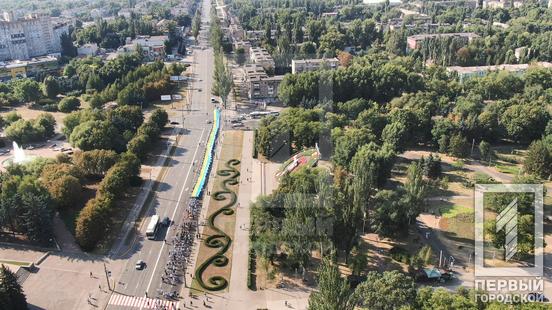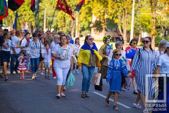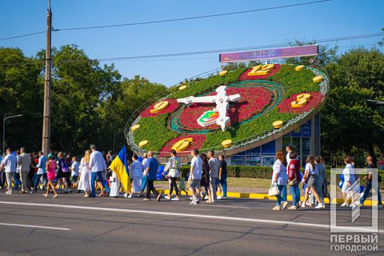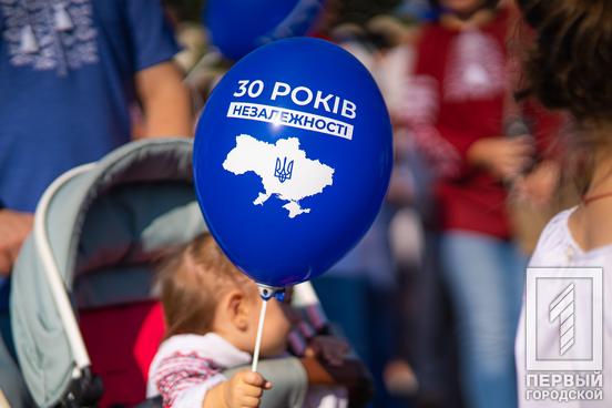 24 серпня о 8:30 містяни зібралися біля Георгіївської дзвіниці, куди прийшли криворізькі сім’ї у національних вбраннях. «Перший Міський» телеканал для підняття настрою усім бажаючим вручив невеличкі презенти – святкові повітряні кульки, а згодом колонна із 1500 городян супроводили 150-метровий синьо-жовтий стяг, який символізує незалежність, свободу та бойовий дух іменинниці – України, якій виповнилося 30 років.