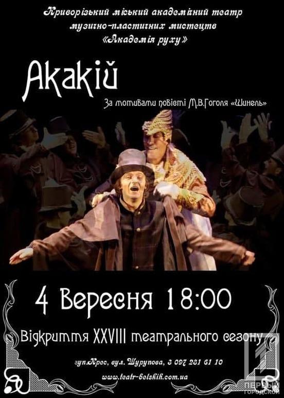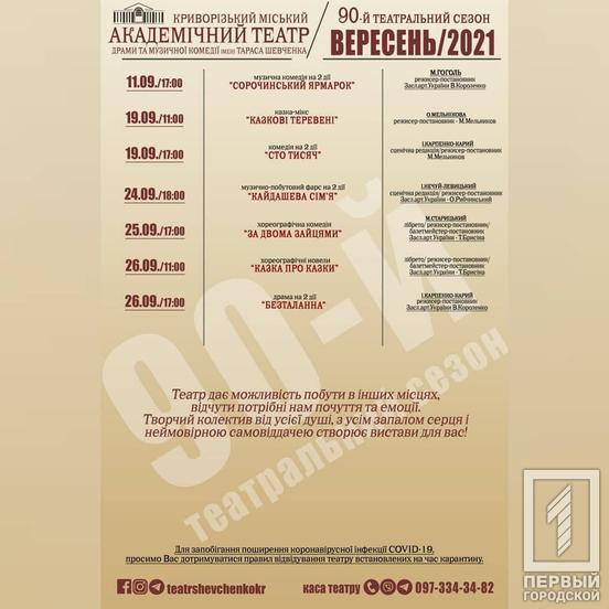 Криворізький міський академічний театр музично-пластичних мистецтв «Академія руху» та Криворізький Академічний театр драми та музичної комедії ім. Тараса Шевченка відкривають новий сезон вистав. Для глядачів двері театрів відкриються вже у вересні.
