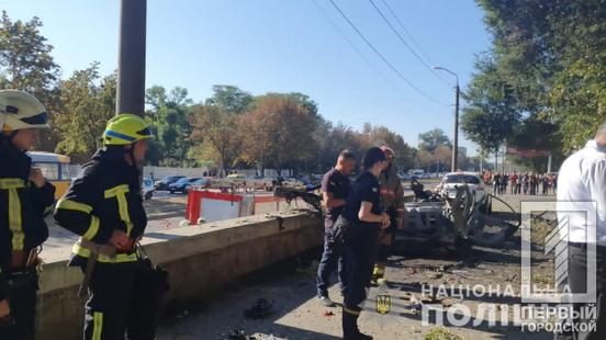 З місця події речниця пресслужби Національної поліції Дніпропетровської області Ганна Старчевська повідомила кореспондентам місцевих ЗМІ: «Зараз на місці працює слідчо-оперативна група, криміналістична лабораторія. Особа одного з водіїв встановлена, щодо особи іншого загиблого, ми працюємо над цим. Скоріше за все цей злочин кваліфікують як теракт».