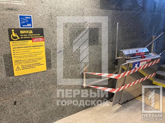 У підземному переході Центрально-Міського району пошкодили електропідйомник, який встановили задля безбар’єрного пересування маломобільних криворіжців. Наразі механізм на стадії ремонту.