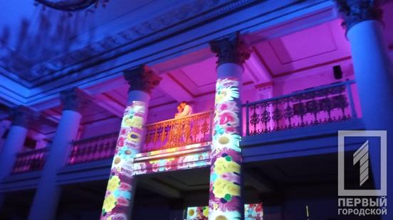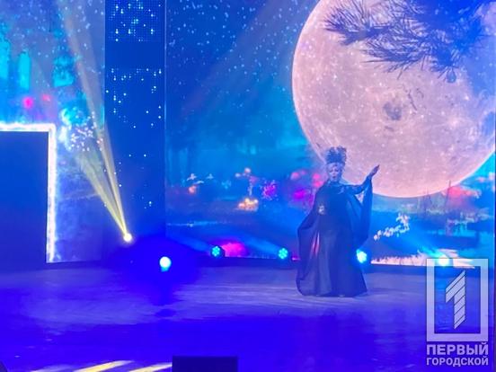 Потім із вокальним номером виступила солістка театру Валерія Курило. На її білосніжній сукні проектор відбивав зоряне небо та блакитні хвилі. Далі – червоною доріжкою під аплодисменти усі артисти театру попрямували у глядацьку залу та за лаштунки.