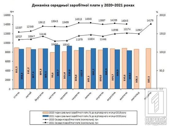 Станом на жовтень цього року середня номінальна заробітна плата штатного працівника підприємств, установ та організацій області становила 14 045 гривень. Порівняно із вереснем 2021 року розмір оплати праці зменшилась на 1,4%, а за рік – збільшився на 15,4%. Індекс реальної заробітної плати у жовтні цього року порівняно з попереднім місяцем становив 97,8%, а з жовтнем 2020 – 104,0%.