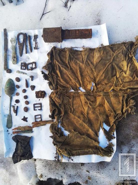 Виявилось, що під землею збереглися останки двох розвідників, які в січні 1944 року пішли в останню розвідку боєм. Те, що це бійці-учасники Нікопольсько-Криворізької операції немає сумнівів, адже на те вказують усі знайдені на місці артефакти, які добре збереглися: камуфльована форма фронтовиків, ремені, обважування, посилений боєкомплект.