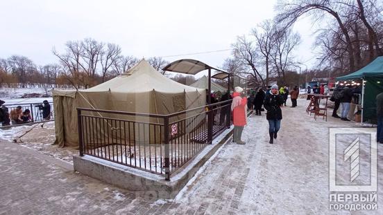 В парку ім. Федора Мершавцева облаштували для обряду пляж на р. Інгулець, який працюватиме з 7:00 до 14:00. Пірнути в ополонку зранку вже встигли близько тисячі людей. На території зони для купання працює пункт обігріву, фудкорти, а також чергують рятувальники, медики та поліція.