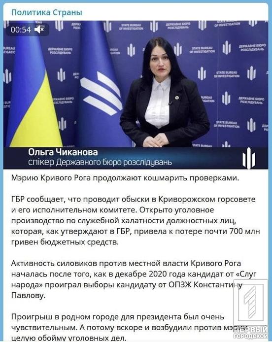 Канал «Політика Країни» пише, що активність силовиків проти місцевої влади Кривого Рогу розпочалася після того, як у грудні 2020 року кандидат від «Слуг народу» програв вибори кандидату від ОПЗЖ Костянтину Павлову.