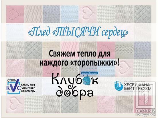 10 квітня на одній з площ Кривого Рогу волонтери поєднають всі «серця» в один великий та наповнений любов’ю криворіжців плед. Тож, всіх містян запрошують долучитись до акції «Плед ТИСЯЧІ сердець!».
