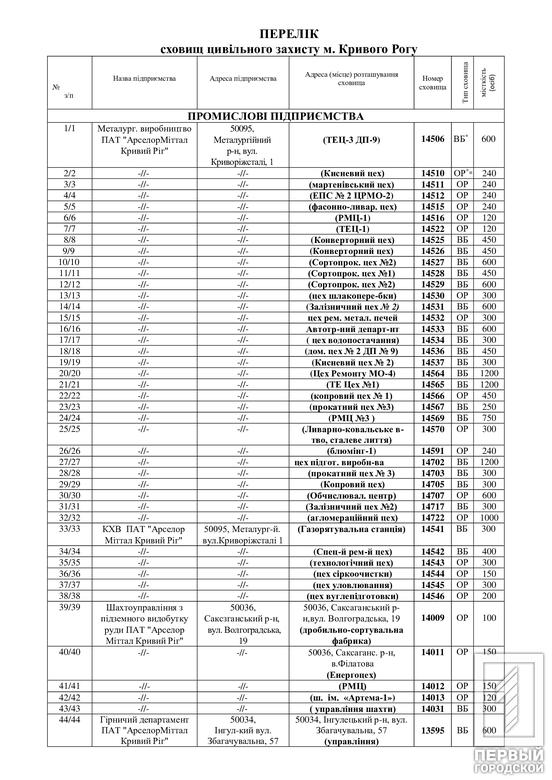В Кривому Розі оголосили перелік сховищ цивільного захисту, де населення може знаходитися у разі обстрілів. В місті достатньо укриттів. В попередні два тижні їх оглядали представники міськвиконкому і рятувальники – всі вони наразі готові до прийому громадян. Перелік сховищ наводимо нижче.