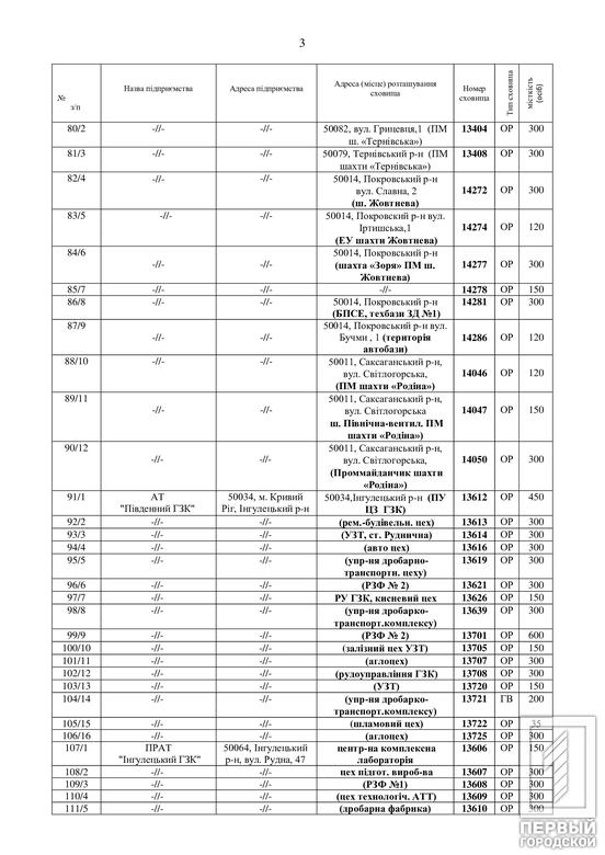 Опубліковано перелік сховищ цивільного захисту Кривого Рогу