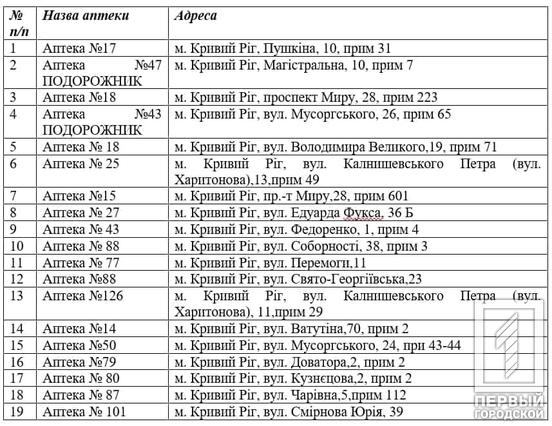 Перелік аптек постійно оновлюється, тому перед візитом до аптеки рекомендуємо зателефонувати для уточнення графіку роботи та наявності інсуліну. Надаємо інформацію на теперішній час: