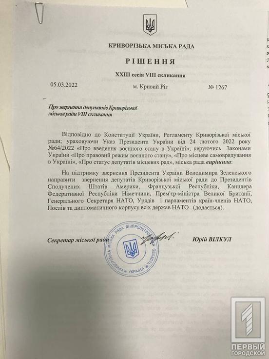 5 березня у Кривому Розі скликали позачергову сесію міської ради. На ній, в умовах військового стану розглянули два надважливі питання, що стосуються безпеки країни та міста. Обидва – депутати підтримали одноголосно.