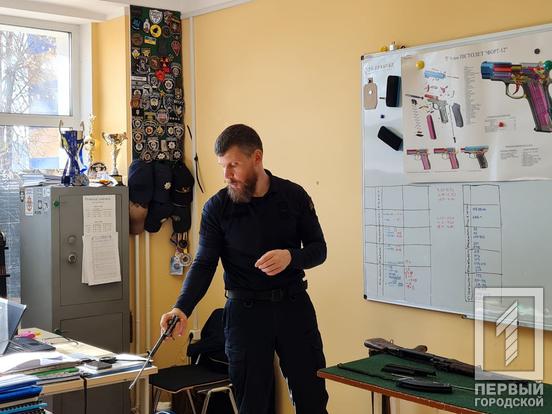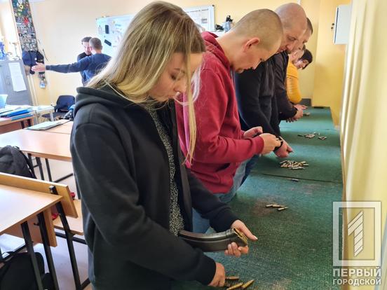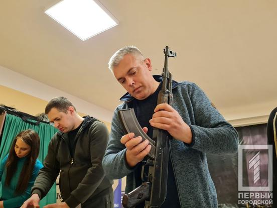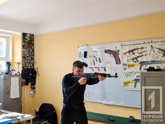 Загалом на заняття прийшло 16 осіб, серед яких є і чоловіки і жінки. Викладачі університету Олексій Цуркан та Володимир Голик розповідали про правила поводження зі зброєю – так званий кодекс стрільця. Крім цього, криворіжцям продемонстрували, як збирати й розбирати автомат Калашникова. Зазначимо, нормативом для курсантів-правоохоронців є розбирання 18 секунд, складання 30 секунд.