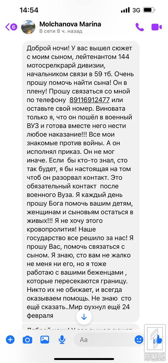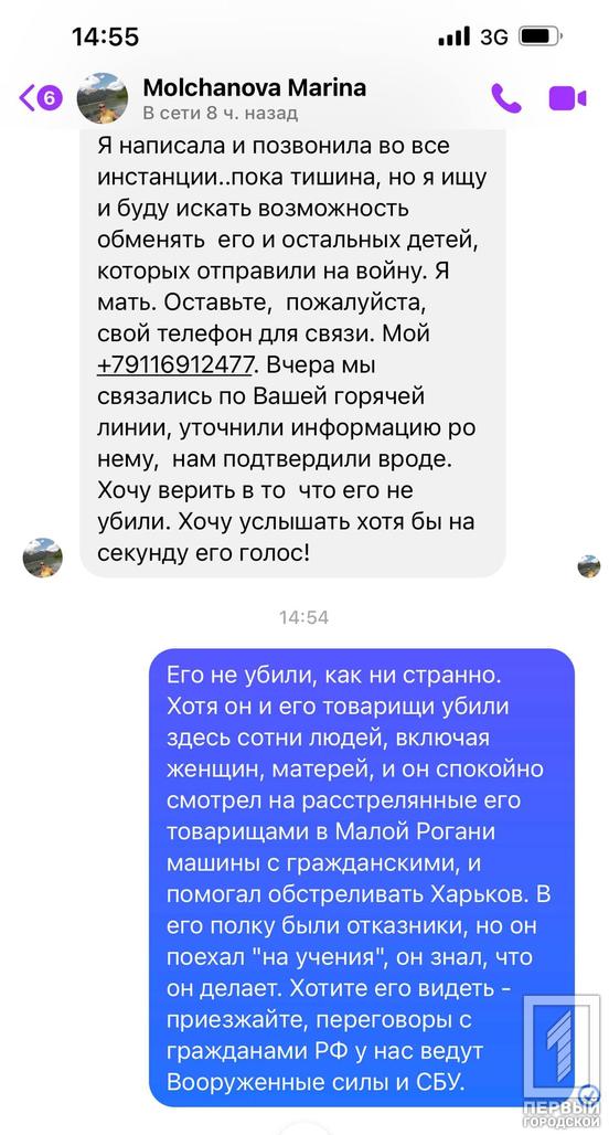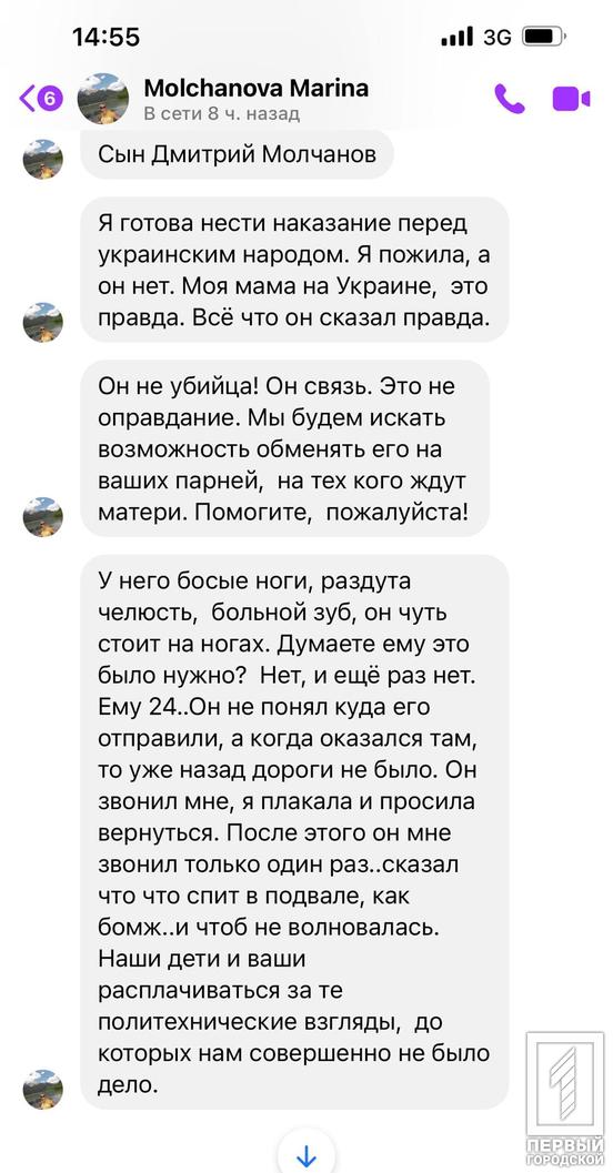 Інтерв’ю з полоненим окупантом Дмитром Молчановим опублікував журналіст Юрій Бутусов. Через деякий час з ним зв’язалась матір військового та підтвердила – все, що полонений розповів про себе – правда. Виявилось, що у окупанта, який місяць обстрілював Харків, а потом – автівки цивільних під селом Мала Рогань, під Кривим Рогом проживають бабуся та дідусь.