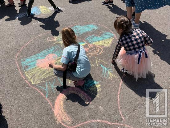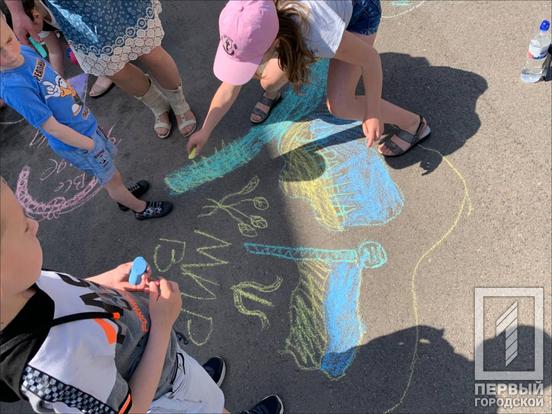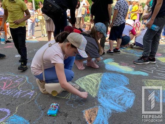 Вранці 1 червня у Покровському районі провели цікавий івент для маленьких мешканців і гостей міста з нагоди Дня захисту дітей. Для юних криворіжців і маленьких переселенців влаштували розважальні й танцювальні конкурси, найголовнішим з яких був конкурс малюнків на асфальті «Україна понад усе». Загалом до дійства долучилось близько 50 дітей з їх батьками.
