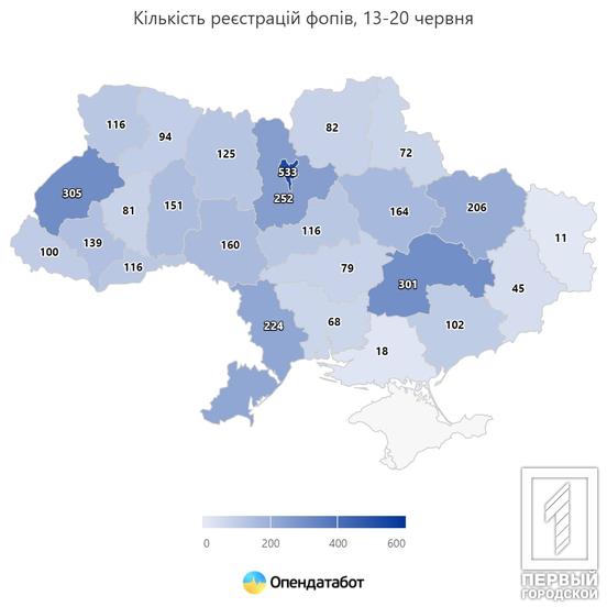 З 24 лютого у нашій країні зареєстрували приблизно 51 тисячу підприємств. З цієї кількості 43 тисячі українців стали ФОПами, а вісім тисяч ‒ юридичними особами. На початку червня зафіксували новий рекорд реєстрацій нових бізнесів за увесь період війни проти рашистів ‒ створили 4 652 підприємства. Загалом за три тижні з'явилось понад 12 тисяч нових ФОПів.