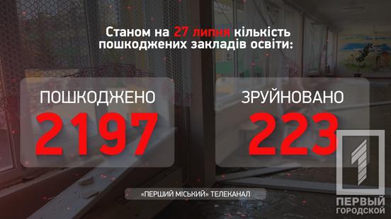 Також загарбники постійно шкодять цивільній інфраструктурі України, обстрілюючи її та бомбардуючи. З початку війни через дії рашистів пошкоджено 2197 закладів освіти. З цієї кількості 223 не підлягають відновленню.