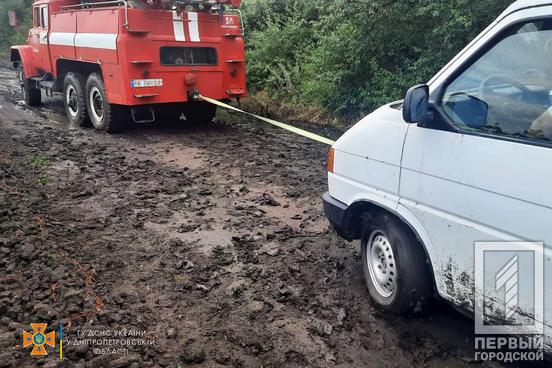6 серпня в рятувальну службу повідомили про те, що через сильну зливу розмило частину дороги у Криворізькому районі, а машина одного з місцевих жителів застрягла у багнюці. На допомогу вирушили надзвичайники, які витягли авто з пастки. Така інформація з’явилась на сайті Державної служби України з надзвичайних ситуацій у Дніпропетровській області.