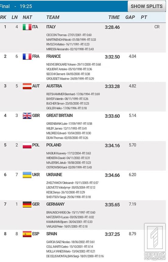 Криворізький спортсмен у складі команди з естафетного плавання встановив новий рекорд України