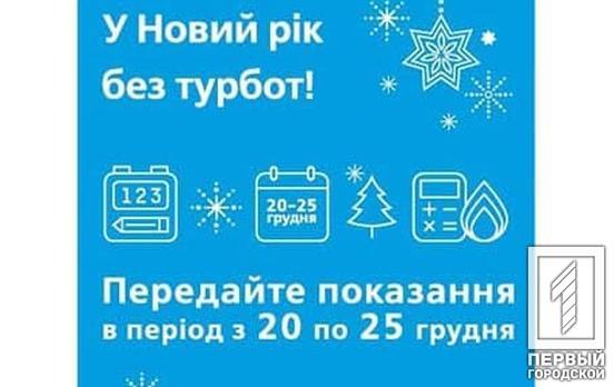 АТ «Криворіжгаз» нагадує про необхідність передачі даних лічильника газу з 1 по 5 число кожного місяця. Незалежно від того, хто є вашим постачальником газу, показання лічильника необхідно, як і раніше, передавати газорозподільній компанії - АТ «Криворіжгаз».