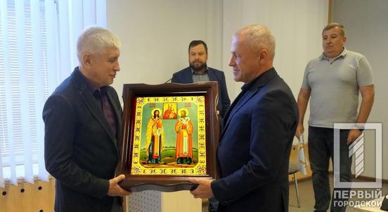 З цієї нагоди голова правління Сергій Новак вручив в. о. директора шахти «Криворізька» Костянтину Прокопчуку ікону, на якій зображена Богоматір та святі великомученики Онуфрій і Порфирій.