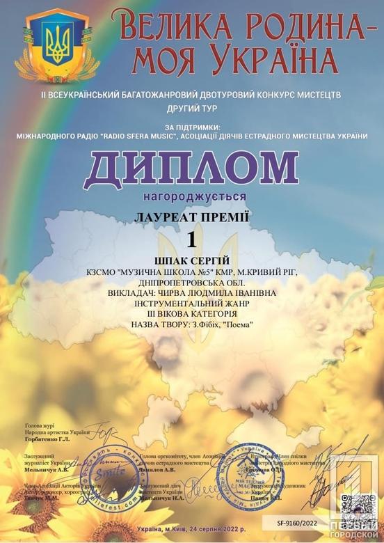 Нагадаємо, троє юних музикантів з Кривого Рогу здобули призові місця на фестивалях мистецтв.