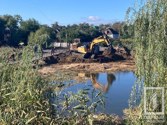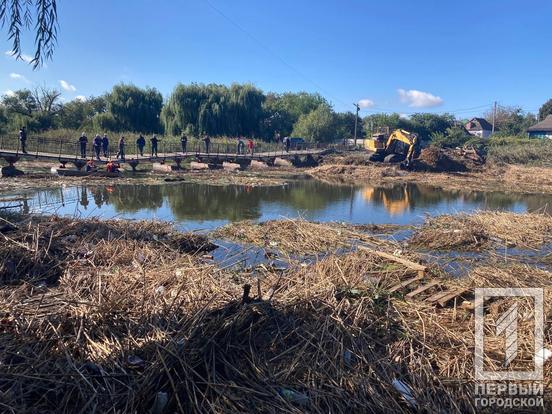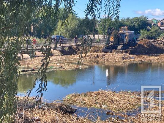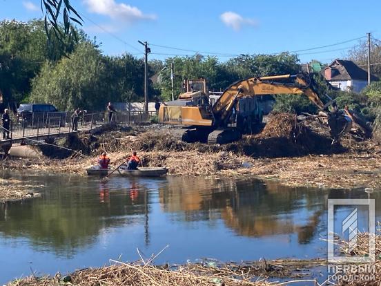 У Інгулецькому районі Кривого Рогу розчищають русло річки біля мосту, де утворився «затор» із очерету після підтоплення