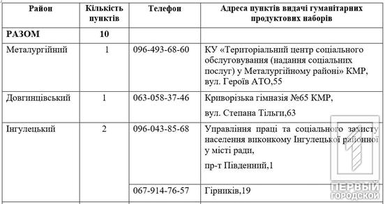 22 вересня Військова адміністрація Кривого Рогу спільно з міжнародною гуманітарною організацією Save the children почала видавати продуктові набори для сімей з числа ВПО, в яких виховуються діти молодші 18 років, є пенсіонери, яким виповнилося більше 60, а також люди, що знаходяться в особливо скрутному становищі.