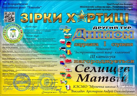 Відмінно продемонстрував свій талант і вихованець криворізької музичної школи №6. Матвій Селищев брав участь у Міжнародному конкурсі «Зірки Хортиці». За результатами фестивалю, хлопець став переможуем у номінації «Інструментальний жанр». Творчим ментором юного таланту є Андрій Арістархов.