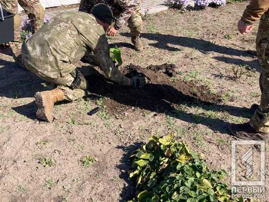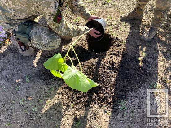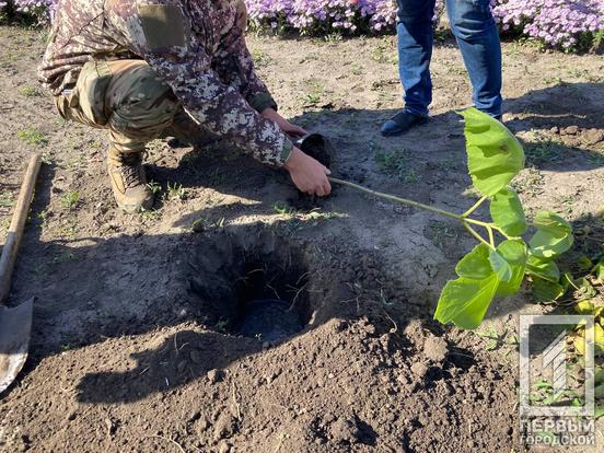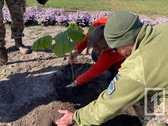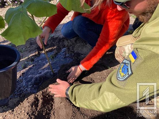Загалом, висадили вісім саджанців дерев павловнія повстяна, що швидко розростається й міцнішає. Вони зростатимуть перед Кочубеївською сільською радою, завжди нагадуючи про наших мужніх криворіжців.