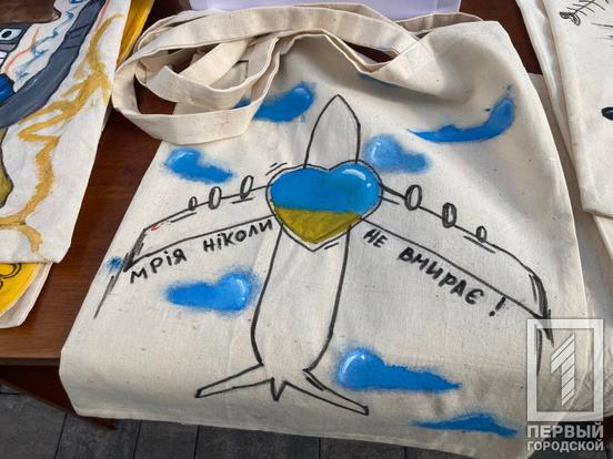 На виставці фотографій та малюнків із відомими локаціями Кривого Рогу можна було придбати благоддійнну торбинку із патріотичними малюнками. Або ж просто залишити донат. Усі зібрані кошти передадуть на потреби наших військових. А зібрати вдалося чимало – 11,5 тисяч гривень.