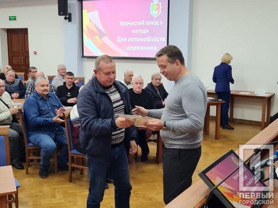 Заступник міського голови Олександр Катриченко вручив міські нагороди. Зокрема, почесними грамотами відзначені: Володимир Зіньковський, водій КП «Автобаза№1»; Олексій Курило, машиніст укладача асфальтобетону ТОВ «Весташляхбуд»; Олексій Лаута, водій КП «Автобаза №1»; Сергій Луцько, водій КП «Кривбасводоканал»; Володимир Недериця, директор ПП «Нафтатранссервіс» та Юрій Пономаренко, тракторист автотранспортного цеху КП «Сансервіс».