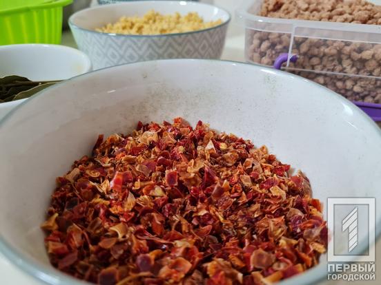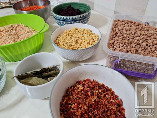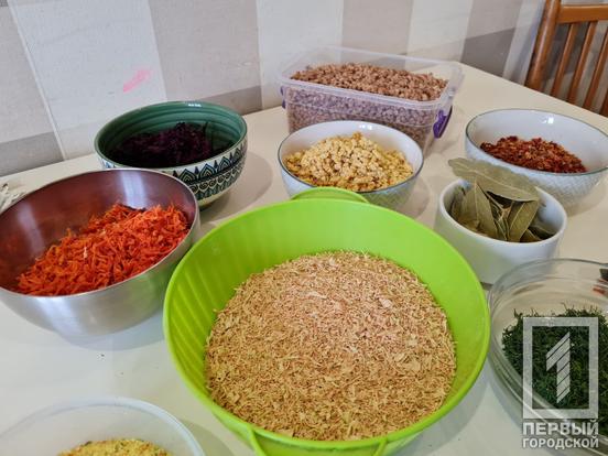 Волонтери з Кривого Рогу налагодили повноцінне виробництво сухих борщів, котрий відправляють захисникам України на фронт. В команді працює близько 15 людей, хтось займається саме нарізкою та сушінням інгредієнтів, хтось закуповує продукти, інші збирають все у пакунки. Також в колективі є людина, яка займається ремонтом сушарок, які часто виходять із ладу через велике навантаження.