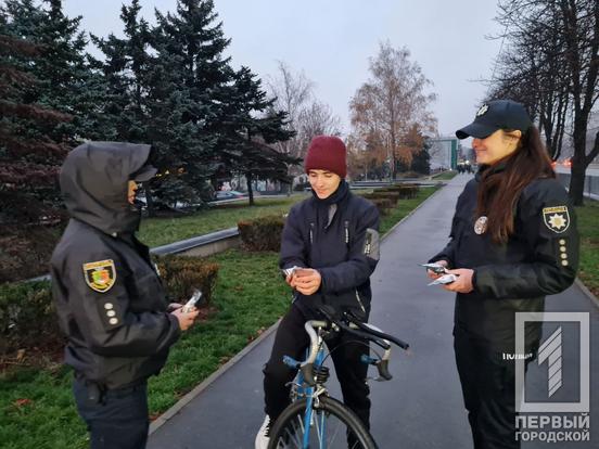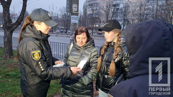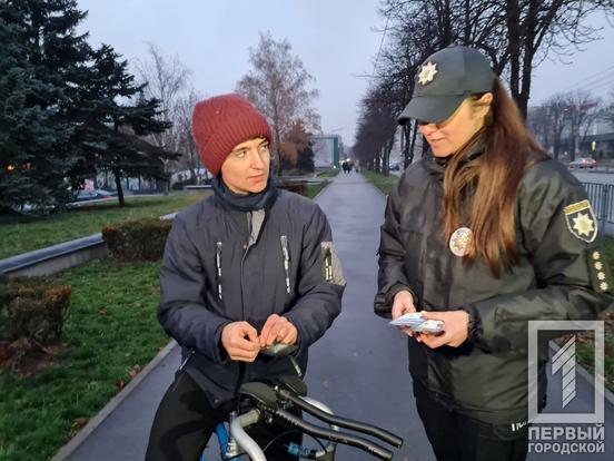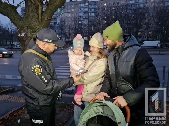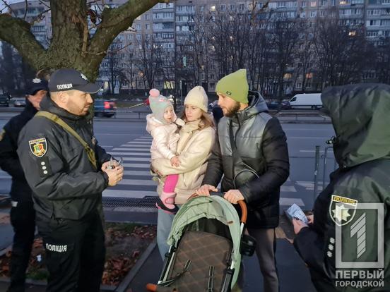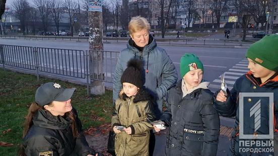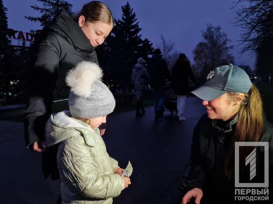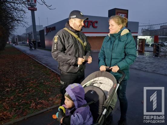 «Світло переможе пітьму»: патрульні Кривого Рогу роздали дітям та дорослим світловідбивальні стрічки